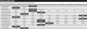 programmable parameters like start force, drag brake rate, and etc.)