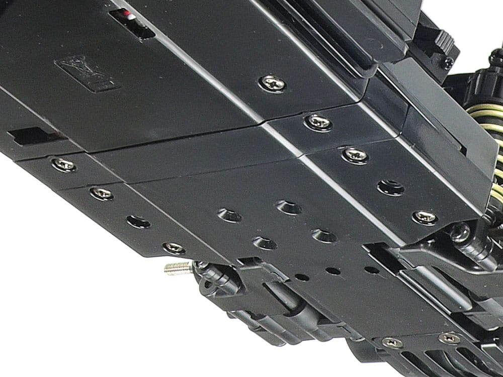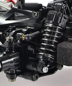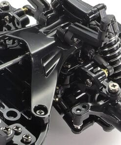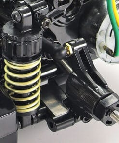 | Specifications ★Length: 390mm, width: 176mm, height: 114mm ★Wheelbase: 225mm ★Tread (front/rear): 138mm ★Rear-motor, rear-wheel drive ★3-bevel differential gear ★3-piece steering tie-rod ★4-wheel independent double wishbone suspension ★Front/rear friction dampers ★Gear ratio = 5.8:1 (using kit-standard 20T pinion) ★Tire width/diameter (front/rear): 25mm/59mm ★Type 540 motor ★Requires an Electronic Speed Controller (sold separately) |