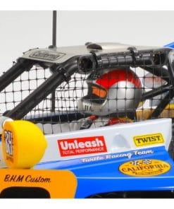• Polykarbonatkroppen (0,7 mm tykkelse) på Hotshot II er ferdigkuttet og ferdigmalt i Brilliant blå. (Kuttlinjer og merker for å lage hull fra den originale Hotshot II (Artikel 58062) karosseriet.) • Nytt rullebur plassert høyere for å sikre hevet førerposisjon for mer realisme. Etter denne endringen, oppdateres også øvre ramme. • Støtter og hjul er metallbelagt med matt overflate. Inkluderer nye klistremerker designet av Jun Watanabes merke “BLOCKHEAD MOTORS.” • Nummerskilt, lyskapsler, sideskilt, vindusnett og dummyantenne inkludert.